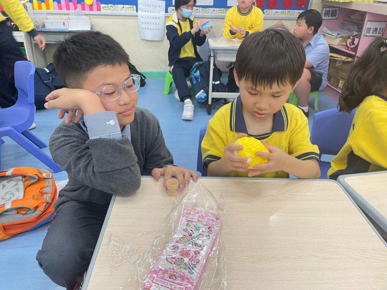 大手和小手又見面啦~今次他們一起製作DIY雪花泥彩蛋!小手把雪花泥輕輕揉一揉、捏一捏,忙碌又專注的樣子超可愛~大手則在旁引導,兩者一起完成一顆顆閃亮作品。看著彼此合作的笑容,我感受到友誼就在牽手之間慢慢加深。這不只是慶祝復活節,更是一份溫暖的陪伴與共同成長。