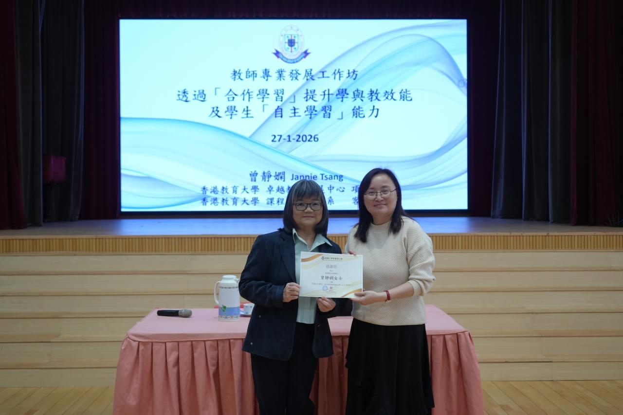 本校於2026年1月27日為老師舉辦「透過合作學習,提升學與教效能及學生自主學習能力」教師發展工作坊,講者回顧了自主學習的主要特色,並重温「合作學習」策略,講者還介紹了四個主要科目(中文、英文、數學和常識)的例子,說明運用「合作學習」策略的重點及方法,以加強學生在課堂上的互動學習。參加的老師表示工作坊幫助他們細想如何在教學實踐中更有效地加強學生在課堂內互動學習及鞏固自主學習。