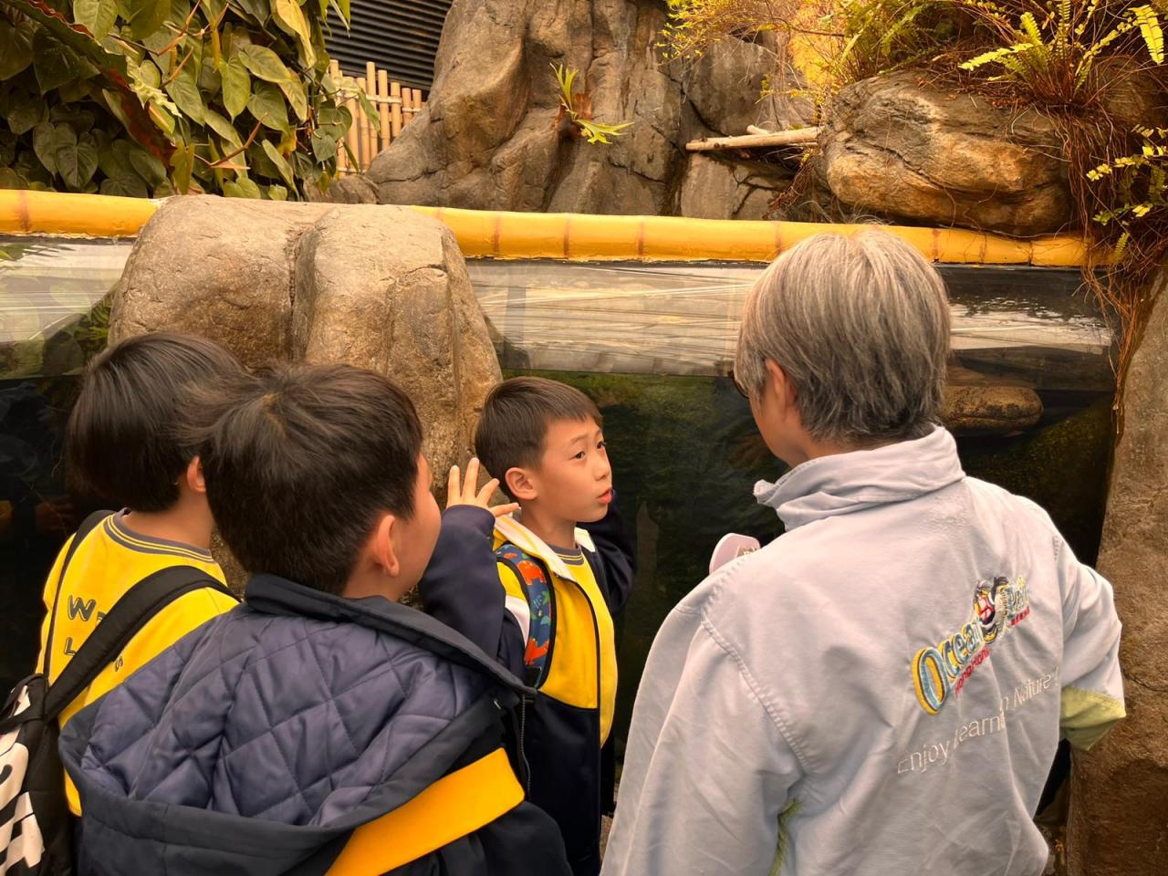 同學有機會再到海洋公園,今次是展開了一場充滿挑戰性的「遊歷海洋公園定向」活動!每組同學都拿到一張任務卡,上面寫著有趣的指定任務:有的要找出不同的動物品種數量、有的要捕捉一下海洋生物的特點,還有的要在指定展館前進行生態小觀察!