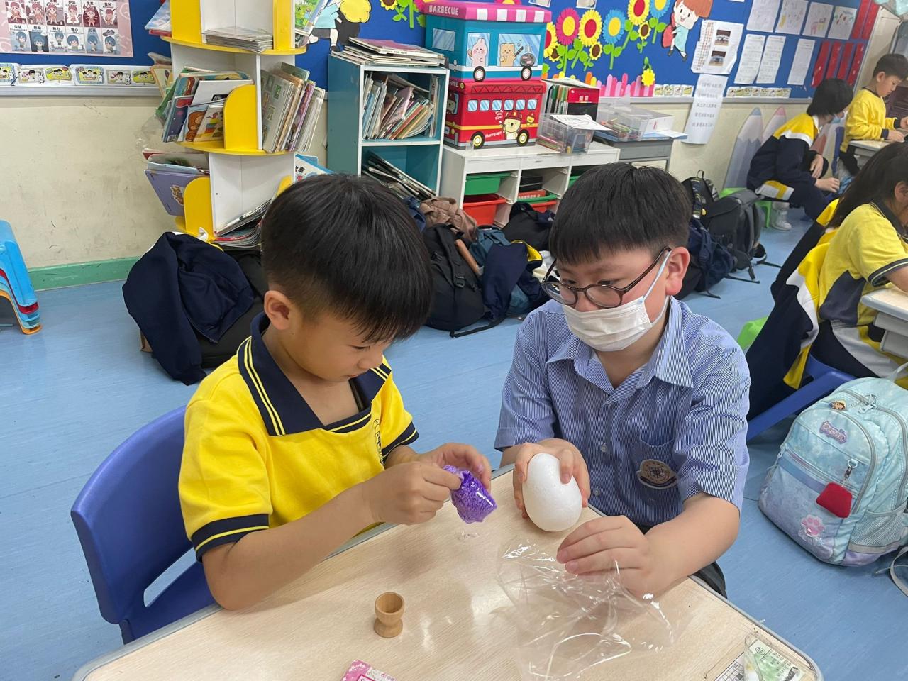 大手和小手又見面啦~今次他們一起製作DIY雪花泥彩蛋!小手把雪花泥輕輕揉一揉、捏一捏,忙碌又專注的樣子超可愛~大手則在旁引導,兩者一起完成一顆顆閃亮作品。看著彼此合作的笑容,我感受到友誼就在牽手之間慢慢加深。這不只是慶祝復活節,更是一份溫暖的陪伴與共同成長。